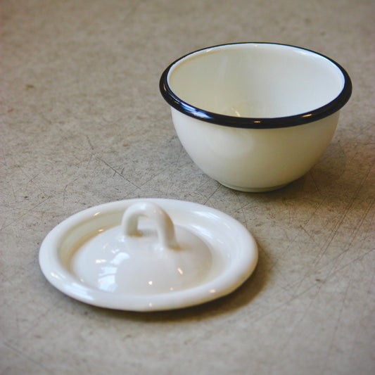 Ukrainian Enamel Bowl with Lid - Cream