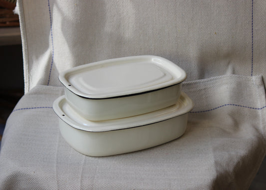 Ukrainian Enamel Storage Casserole Dish (Cream)