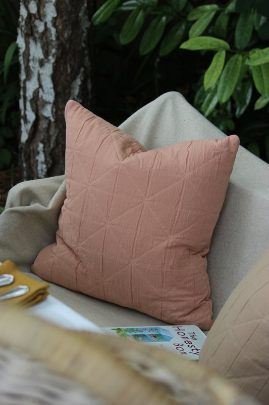 Feather Filled Cushion with Quilted Jacquard Cotton Cover